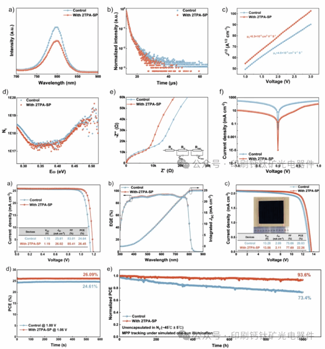 1、优化HTL层性能并配合界面调控实现了效率的提升,这种策略是在效率提升方面较为普适和借鉴意义。