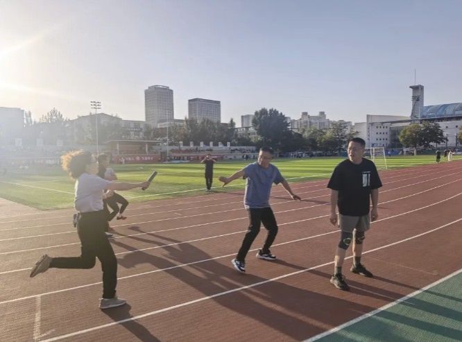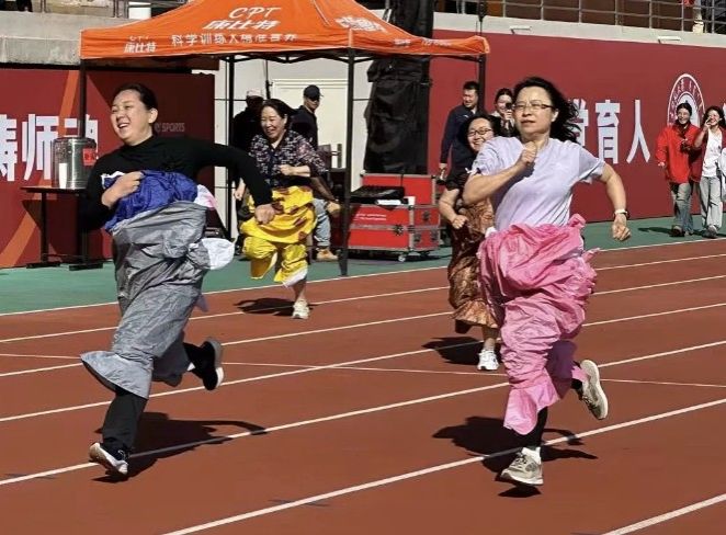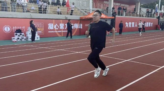 团体项目中,老师们心往一处想、劲往一处使,在接力赛等项目里默契配合,每一次交接、每一次跳跃都凝聚着团队的汗水。